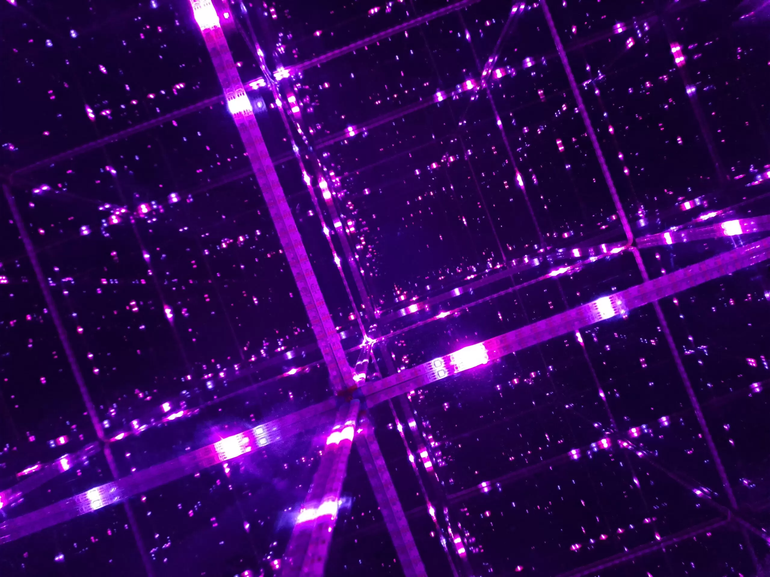 Cube No.4” is part of the Cubes collection, showcasing cubes of light in various colors. The cubes were photographed in some Polish museum and are optical illusions created by combining light and mirrors.